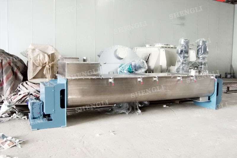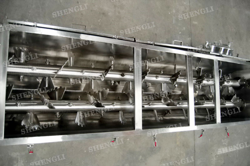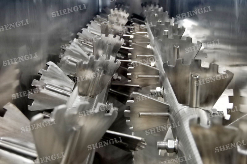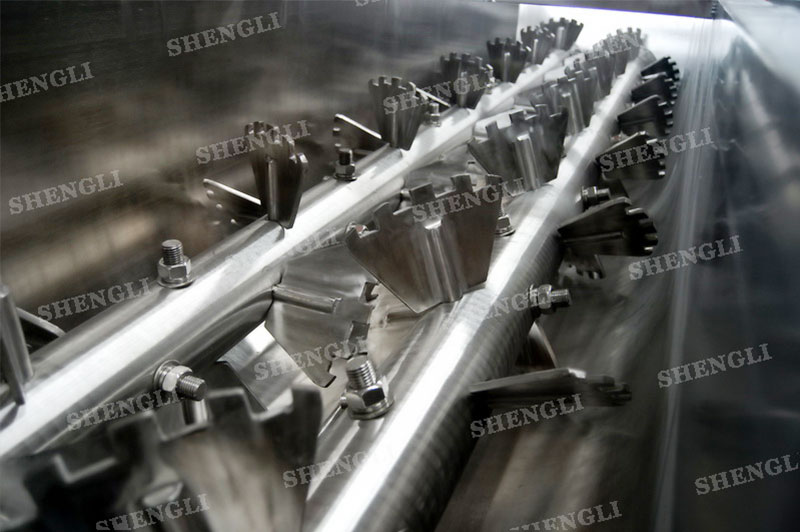 描述:双轴连续式搅拌机采用双轴交叉结构,通过重叠的啮合空间,结合齿形叶片,能够快速混合物料。设备卧式安装,进行连续式生产模式,上盖采用快捷密封,便于物料清理以及卫生控制。设备的齿形桨叶可快速拆装更换,并可进行搅拌效率的调整。