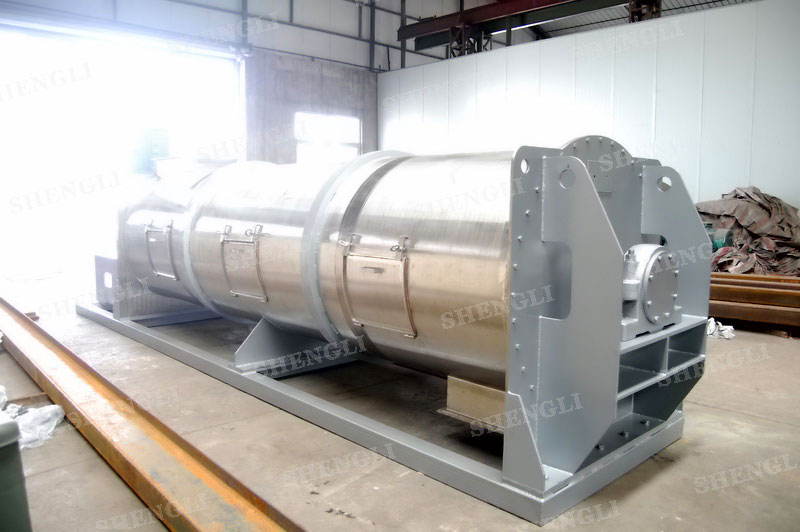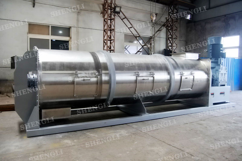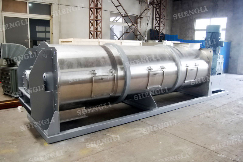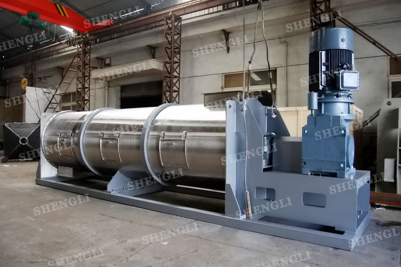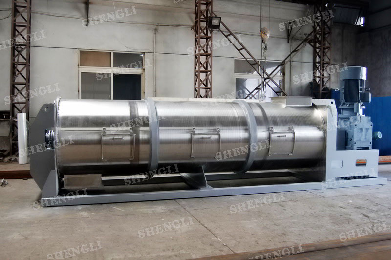描述:连续式犁刀混合机卧式安装,进行连续式生产模式,内部配置犁刀能够有效分散、混合物料。设备主轴采用填料密封,配置基础安装框架,桶侧开设检修门。