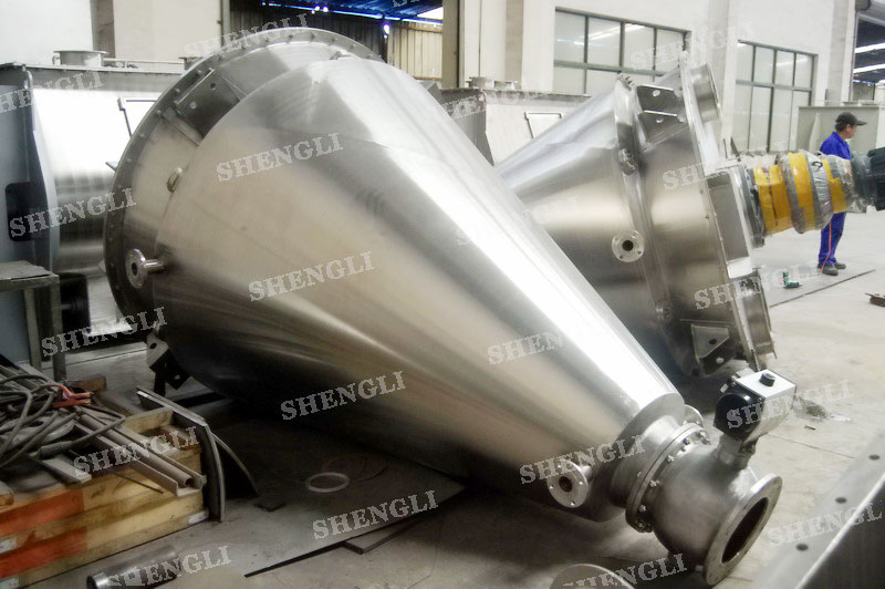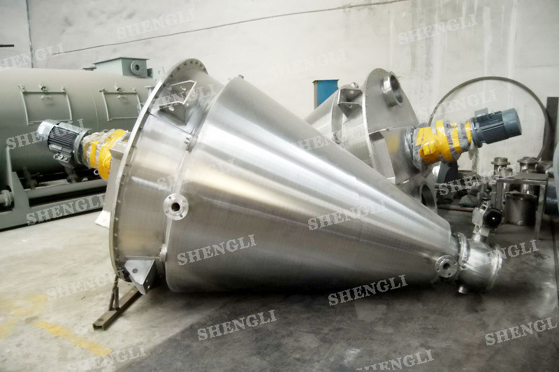 描述:锥形搅拌机内部安装非对称倾斜螺旋,双螺旋自身旋转,提升物料,并有公转减速箱驱动,沿锥体中心轴公转,360度搅拌物料,拥有非破坏性搅拌以及快速且无残留卸料的特点。该设备配置内加热夹套、配置气动球面阀,内外表面做亚光处理。