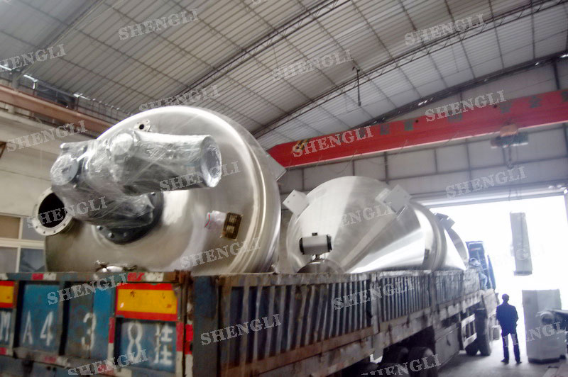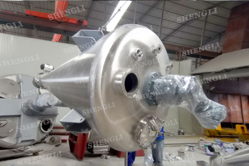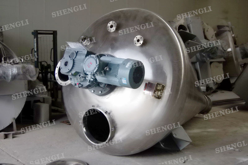 描述:锥形双螺旋混合机内部安装非对称倾斜螺旋,双螺旋自身旋转,提升物料,并有公转减速箱驱动,沿锥体中心轴公转,360度搅拌物料,拥有非破坏性搅拌以及快速且无残留卸料的特点。该设备采用上盖一体式,选用耐压椭圆封头结构、配置气动球面阀,锥形中心轴喷液,内表面做镜面处理、外表面亚光处理,架设人孔、观察口、排气口等设置。