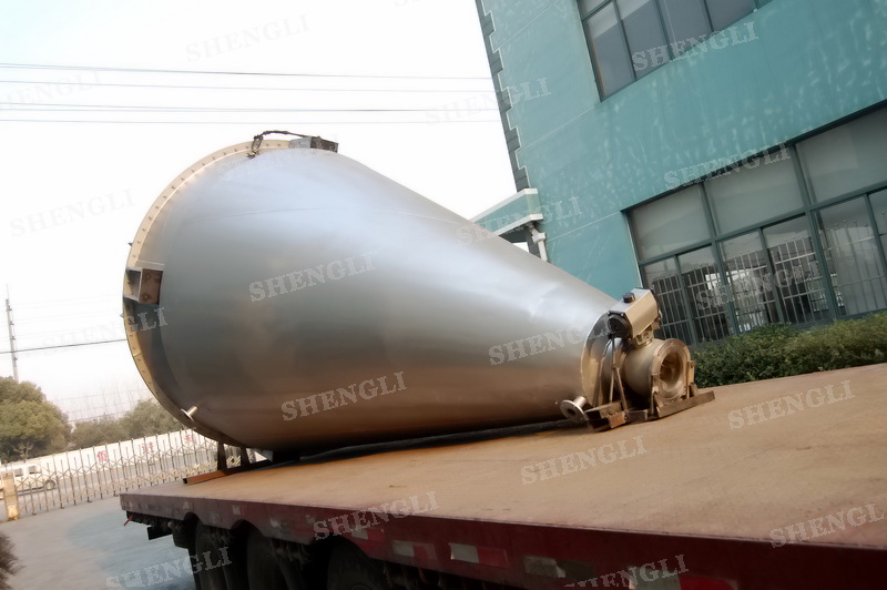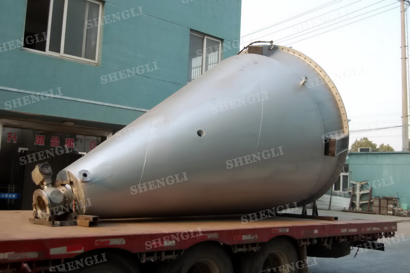 描述:锥形混合设备内部安装非对称倾斜螺旋,双螺旋自身旋转,提升物料,并有公转减速箱驱动,沿锥体中心轴公转,360度搅拌物料,拥有非破坏性搅拌以及快速且无残留卸料的特点。该设备配置自转、公转一体式驱动,筒体外设导热循环夹套,配置锥体中轴线喷液喷头,筒体底部配置气动球面阀,开设投料口、排气口等。