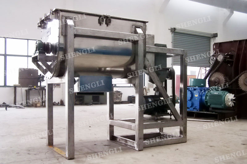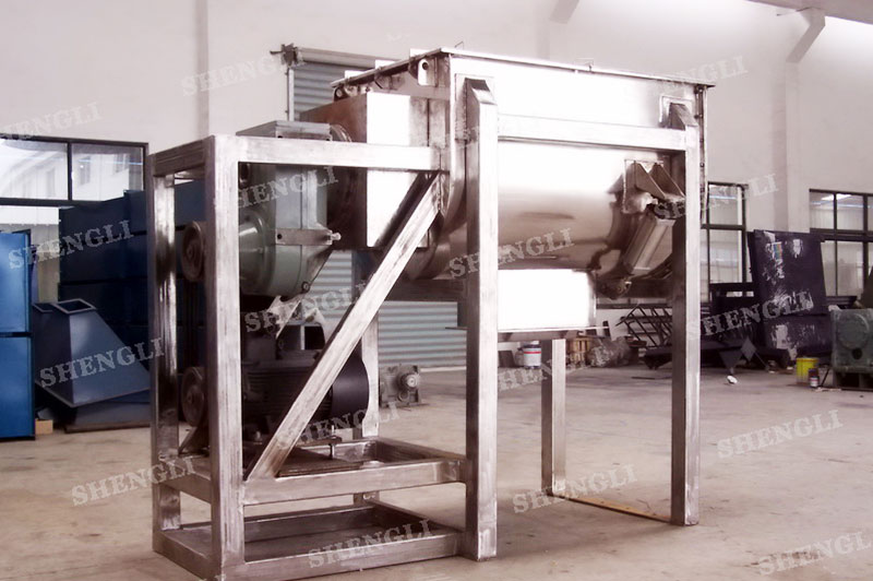 工作原理:桨叶混合机采用U型筒体,内设平行主轴,主轴上安装若干倾角式桨叶刀,不仅能快速高效的搅拌物料,且不会破坏物料,不会卡料。