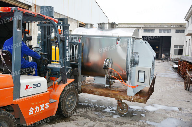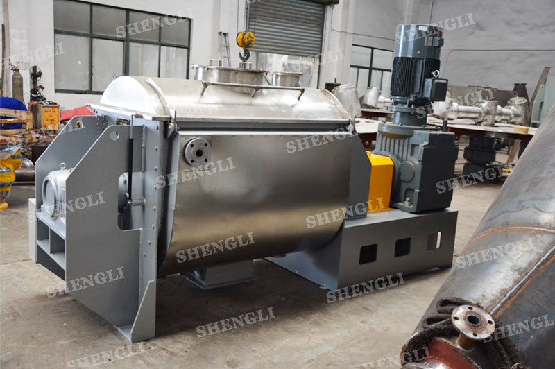 工作原理:桨叶混合机采用U型筒体,内设平行主轴,主轴上安装若干倾角式桨叶刀,不仅能快速高效的搅拌物料,且不会破坏物料,不会卡料。