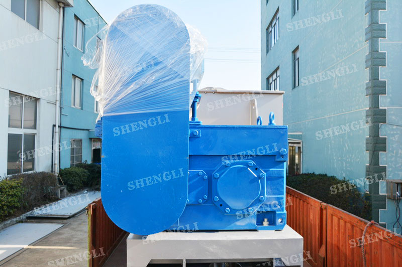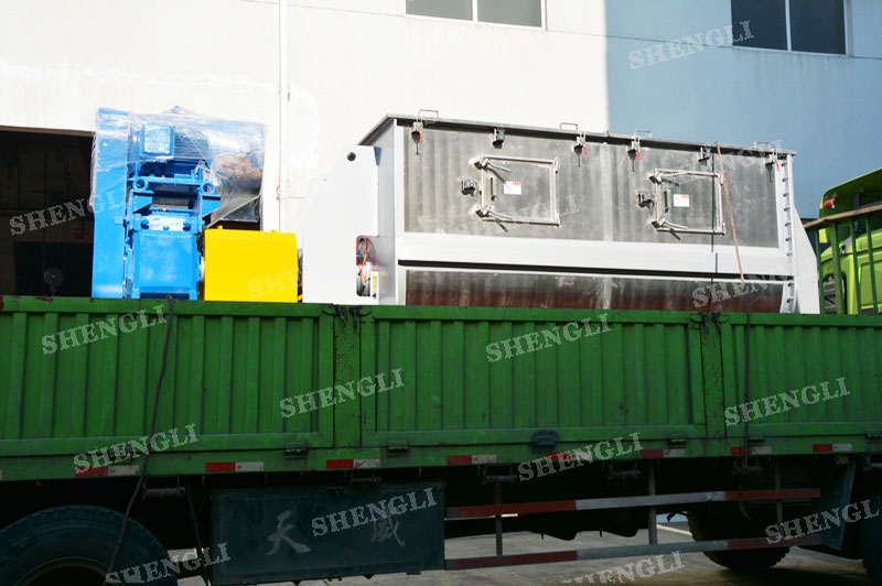 设备配置:加强型设备,高功率、低转速;筒体中部气动翻板阀;设备主轴采用填料密封;