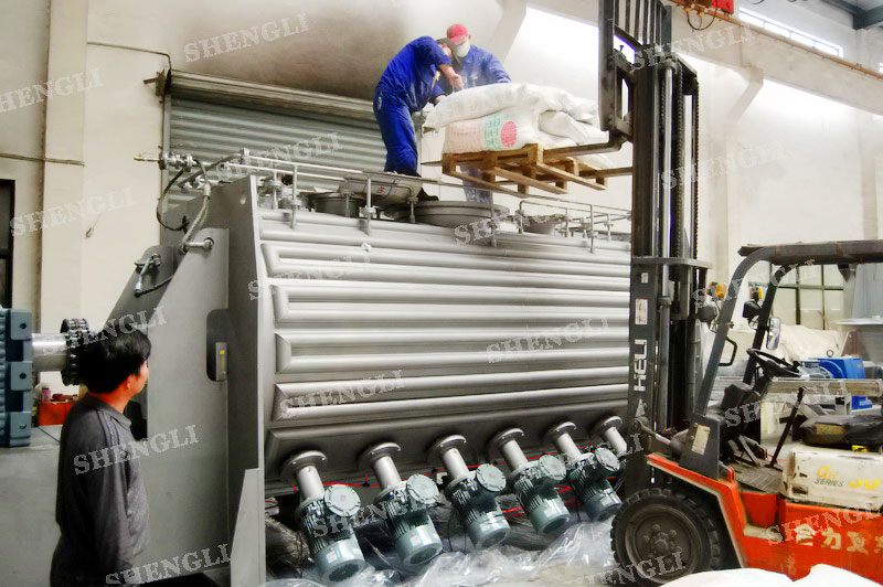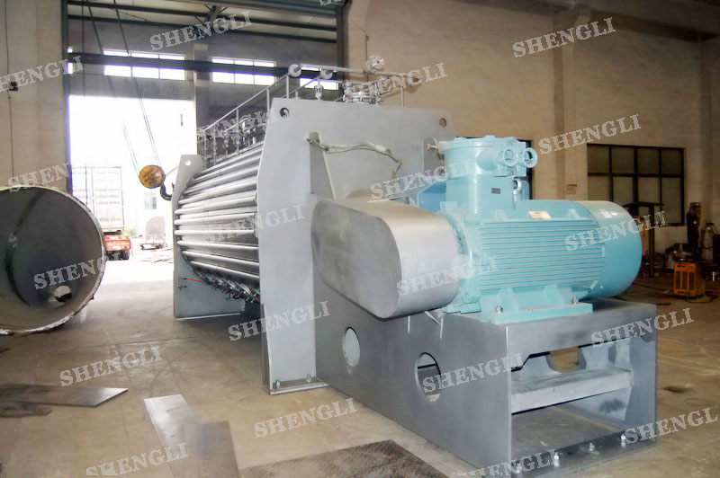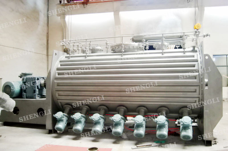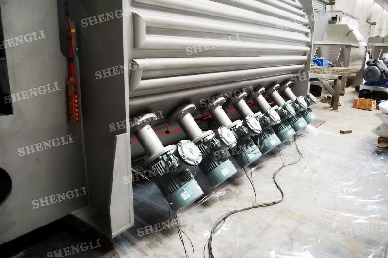 设备配置:配置K系列减速机,皮带式安装;搭载十四台3000转每分钟的高速飞刀;筒体外设导热介质盘管夹套;出料口采用双气动翻板阀;主轴与飞刀主轴采用气密封;设备架设多组喷液系统;筒体上设气动在线取样阀;设备内表面镜面抛光、外表面喷砂亚光。