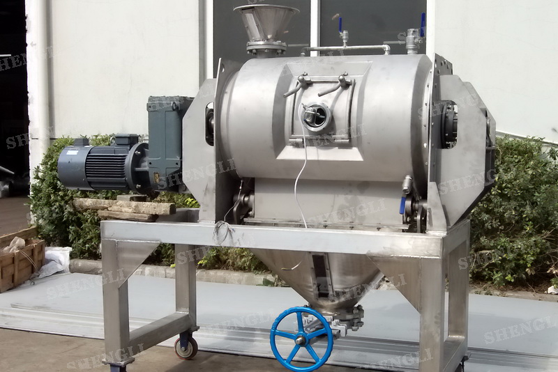 描述:犁刀混合机采用卧式圆柱筒体,内设平行主轴,主轴上安装若干犁式刀头,通过较快的旋转速度,分割、重合物料,实现快速搅拌的功能,常结合1500-3000转高速剪切飞刀相互作用。