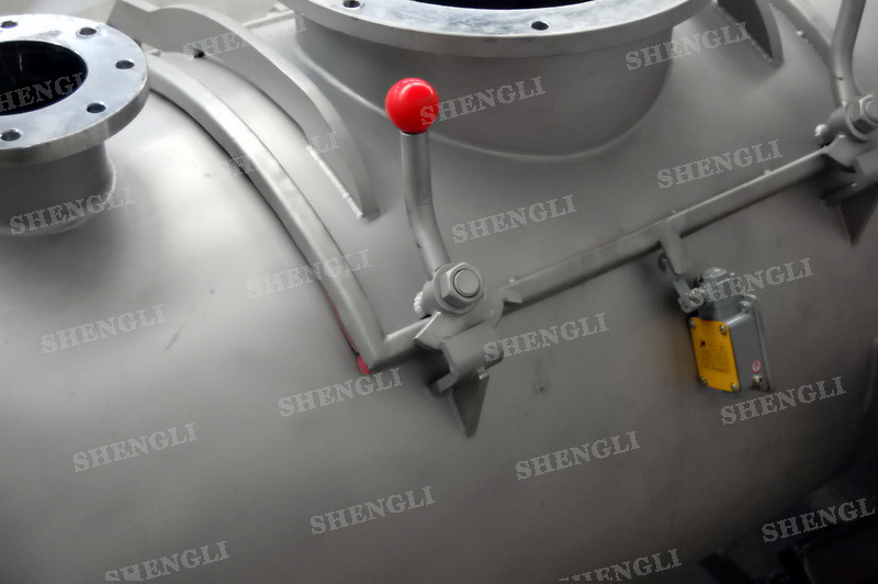 设备配置:配置SEW电机R系列减速机;搭载两台3000转每分钟的高速飞刀;开设快开式检修门及法兰投料口;采用气动翻板阀;主轴与飞刀主轴采用气密封;飞刀处设加液喷头;设备内表面镜面抛光、外表面喷砂亚光。