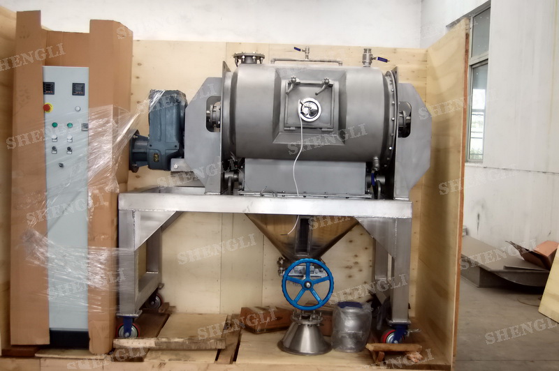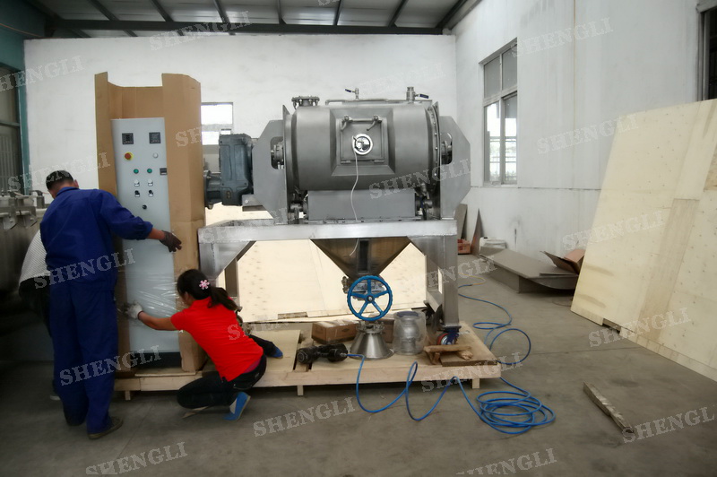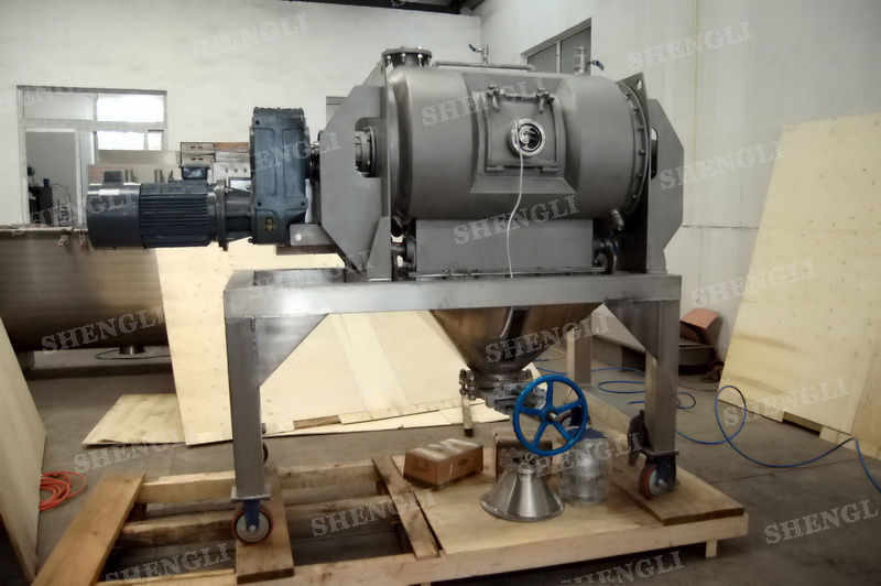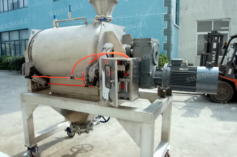 设备配置:配置F系列减速机,平行安装;筒体外设导热介质夹套;开设快开式检修门;出料口采用气动翻板阀;设备主轴采用气密封;筒内设加液喷头;设备内表面镜面抛光、外表面喷砂亚光。