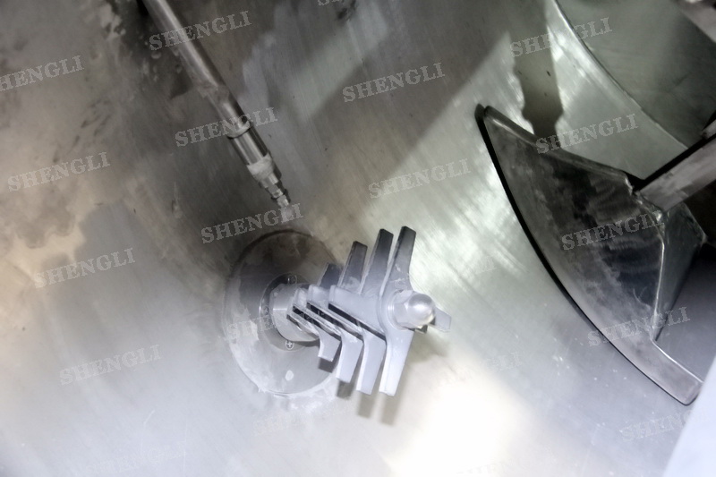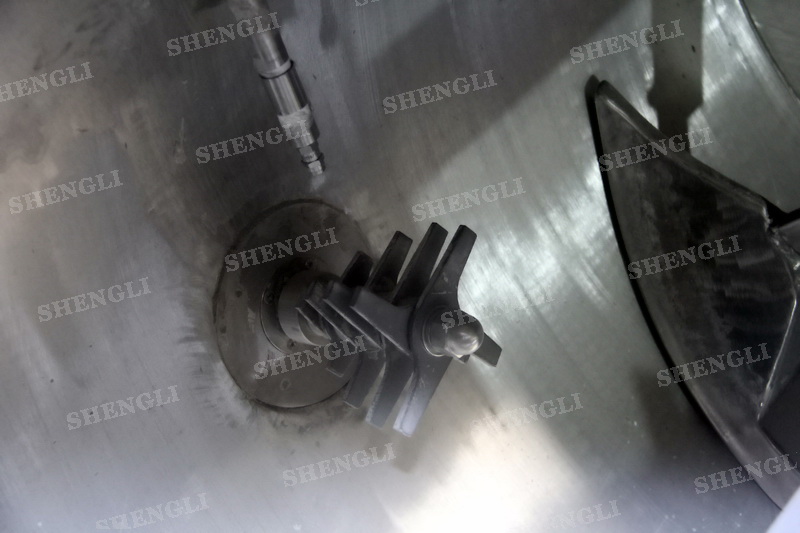 工作原理:卧式犁刀混合机采用卧式圆柱筒体,内设平行主轴,主轴上安装若干犁式刀头,通过较快的旋转速度,分割、重合物料,实现快速搅拌的功能,常结合1500-3000转高速剪切飞刀相互作用。