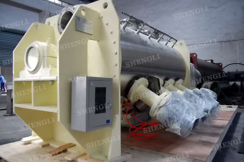 设备配置:配置R系列减速机,平行安装;设备达到重载启动标准;搭载三台3000转每分钟的高速飞刀;筒侧开设两个快开式检修门附安全开关;出料口采用气动翻板阀;主轴与飞刀主轴采用气密封;筒体上设气动在线取样阀;设备内、外表面拉丝亚光。