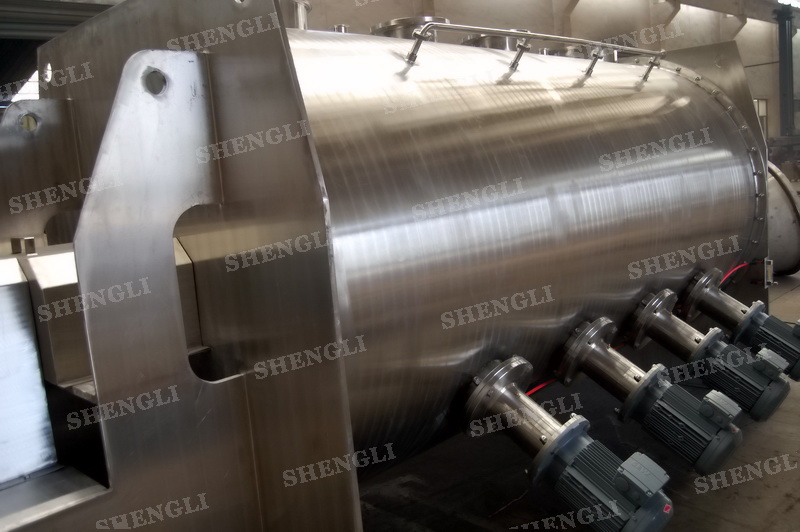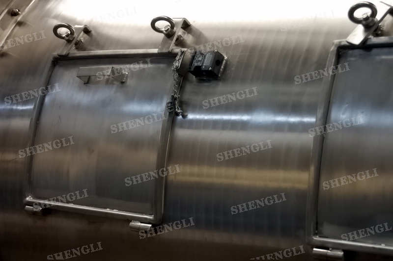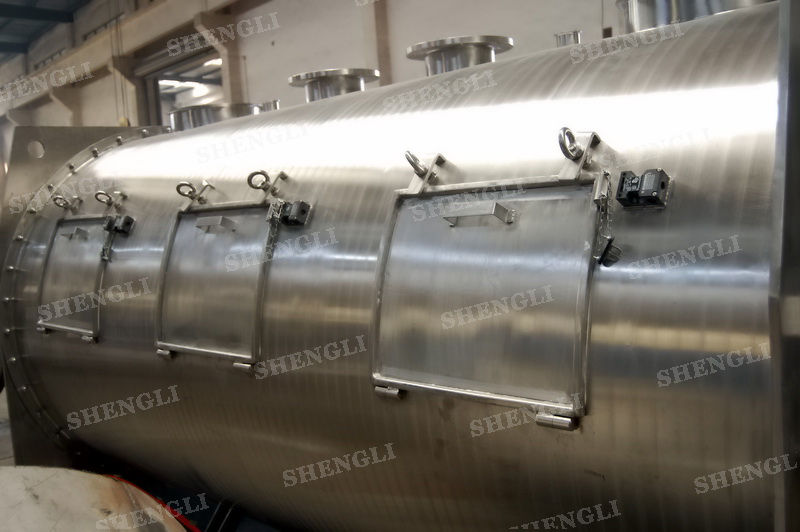 设备配置:配置R系列减速机,直角安装;搭载三台3000转每分钟的高速飞刀;筒体外设导热介质夹套;筒侧开设快开式检修门附安全开关;出料口采用气动翻板阀;主轴与飞刀主轴采用气密封;筒体上设气动在线取样阀;设备内表面镜面抛光、外表面拉丝亚光。