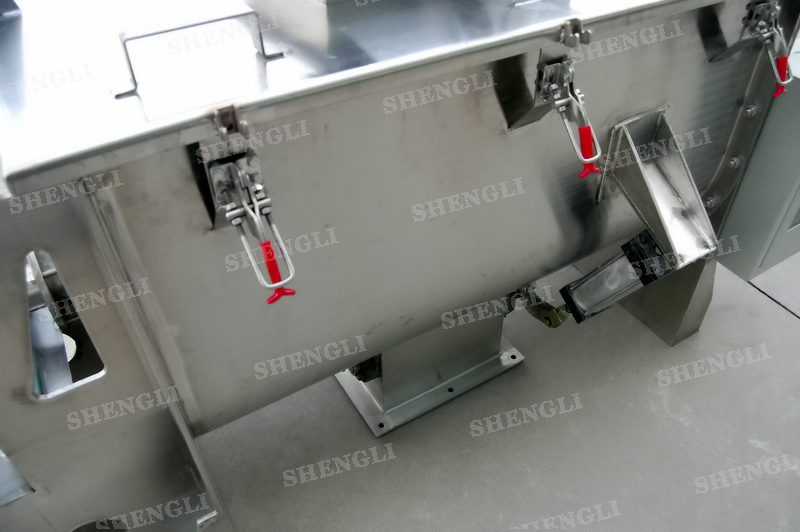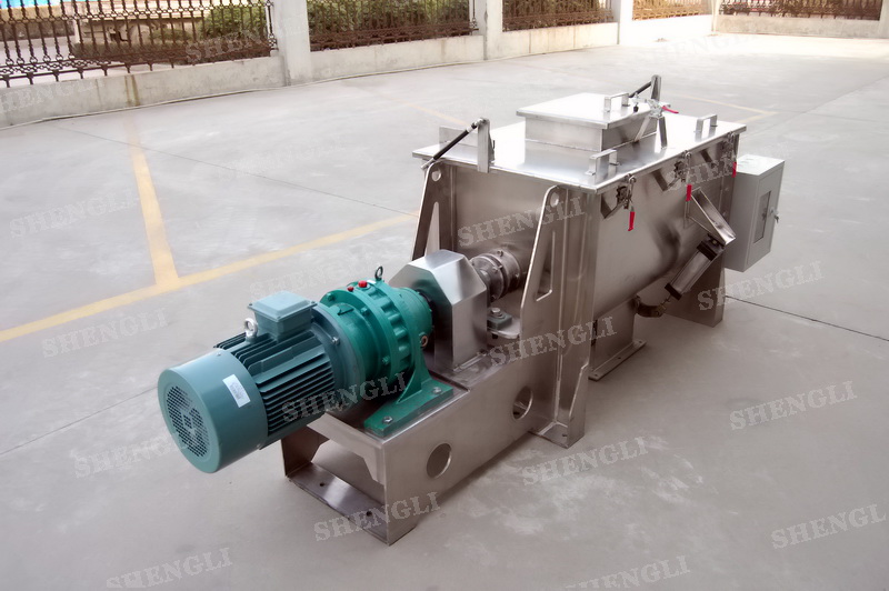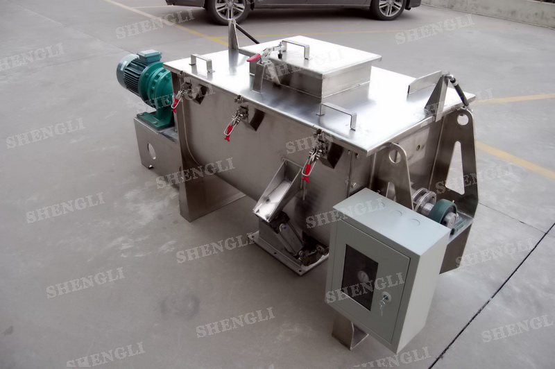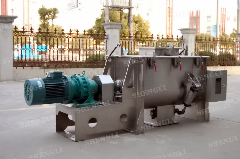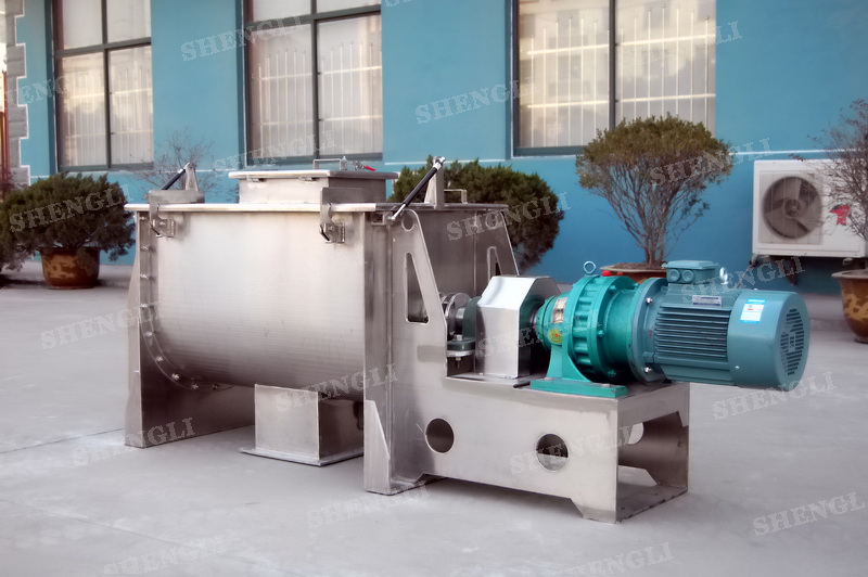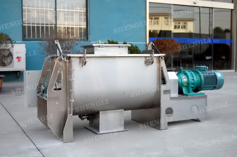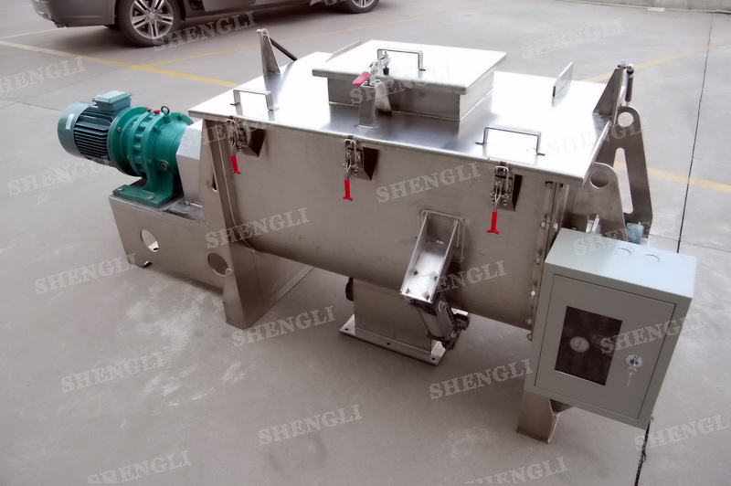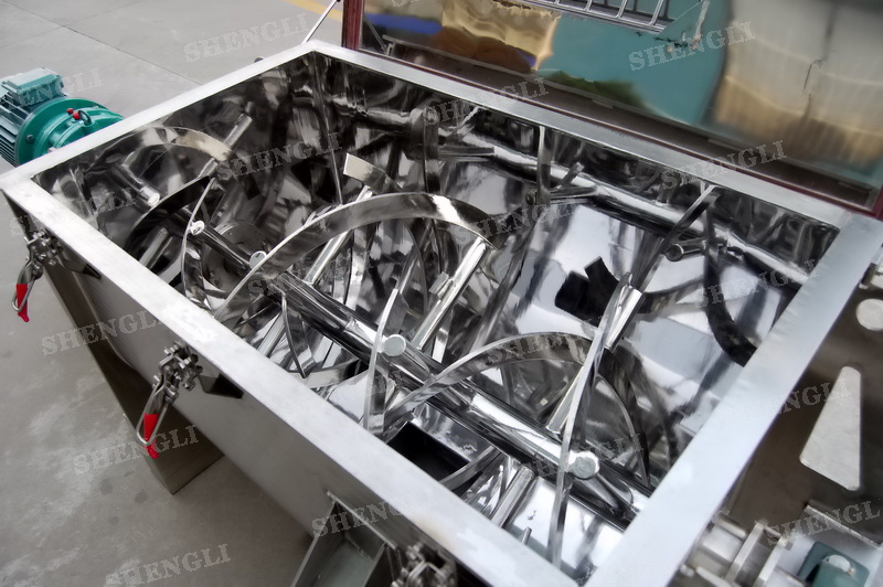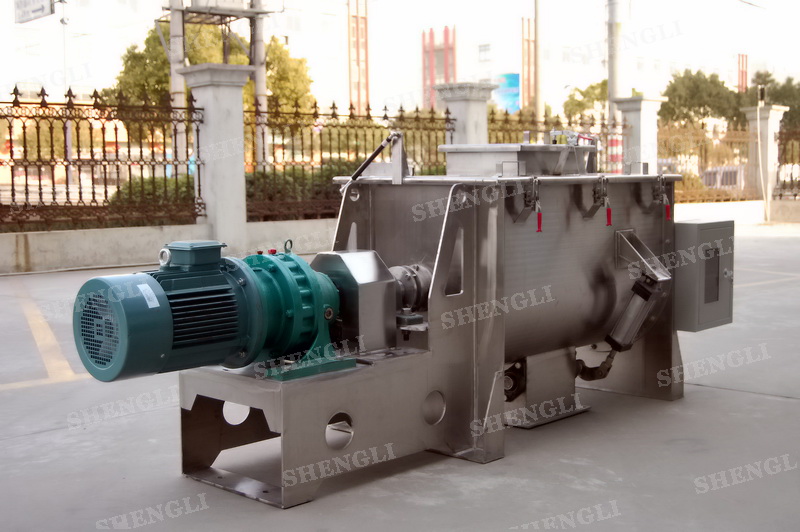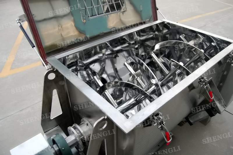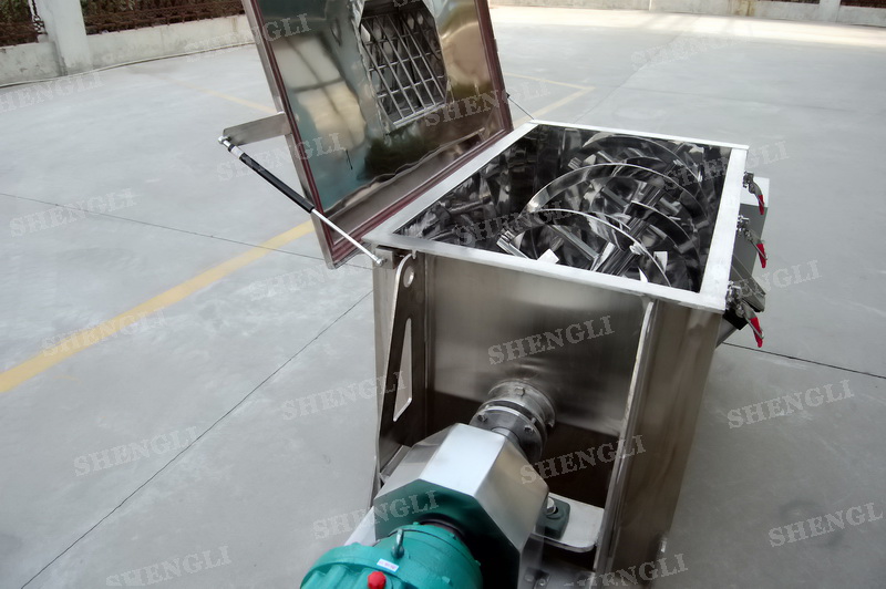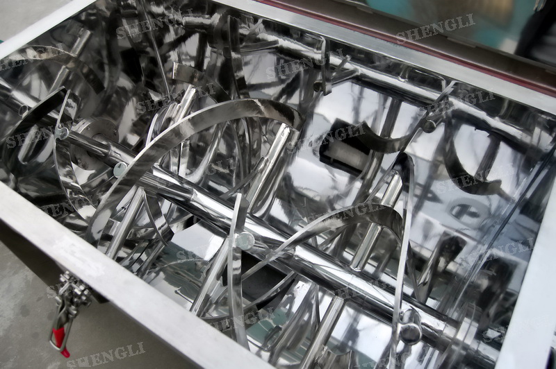 工作原理:螺带混合设备采用U型筒体,内装平行主轴,主轴上安装正反双向的盘条螺带,不同维度螺带分内螺带与外螺带,物料在螺带的驱使下反复参混,能够快速高效的混合。