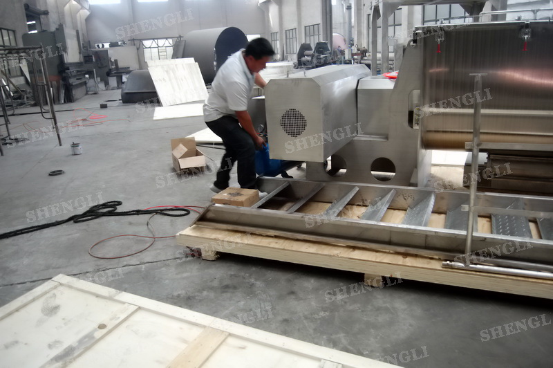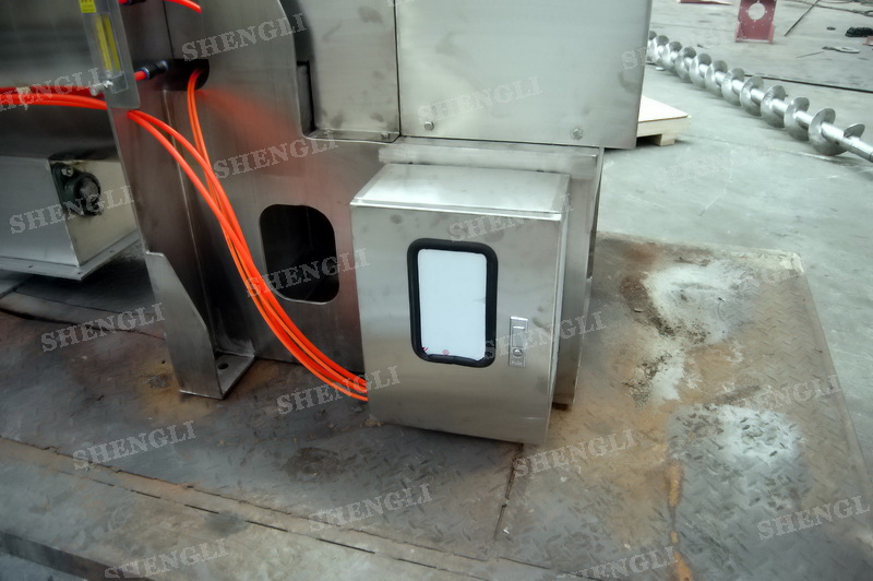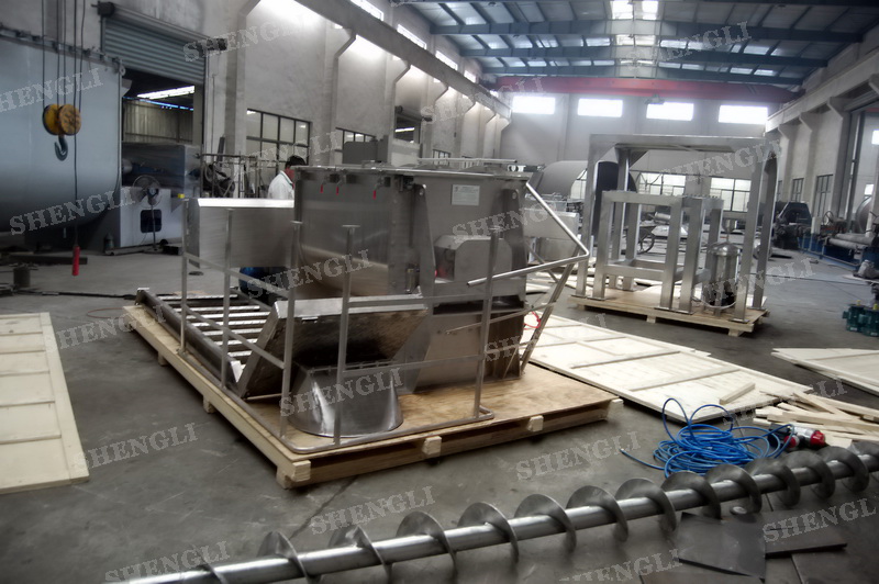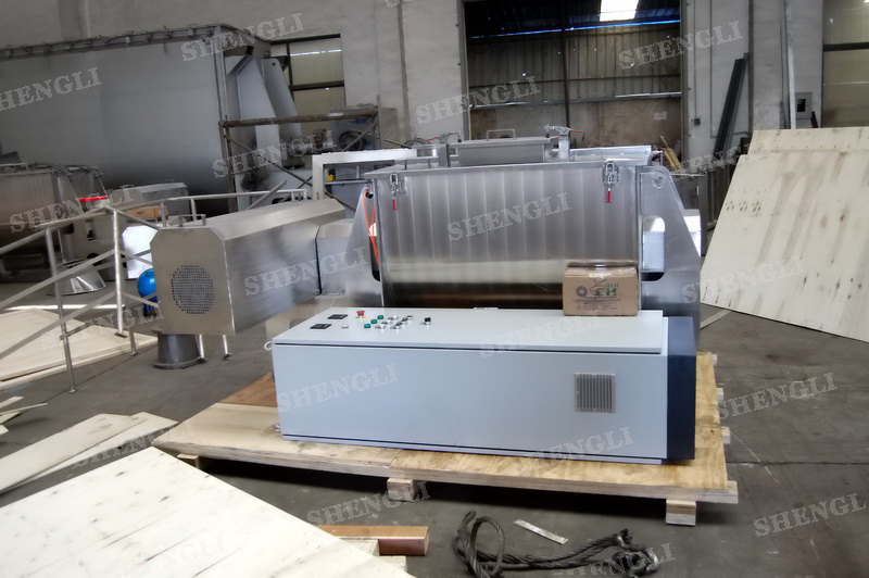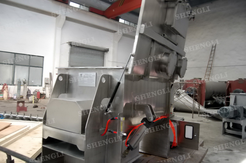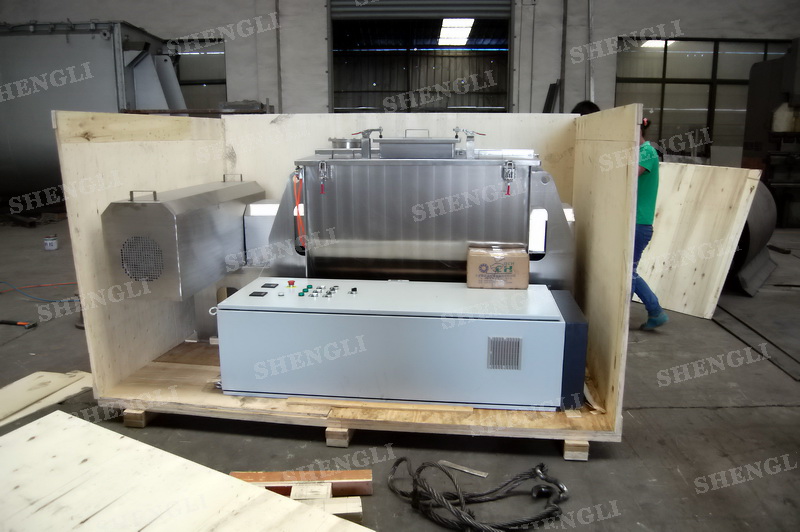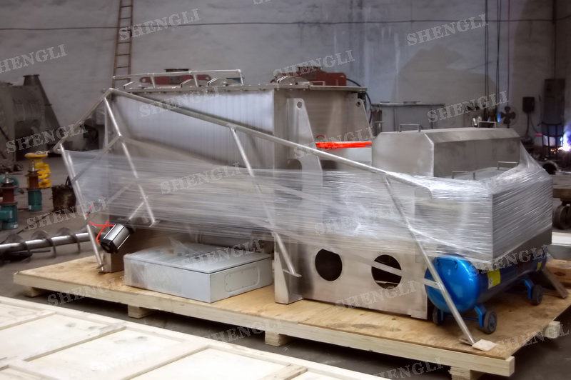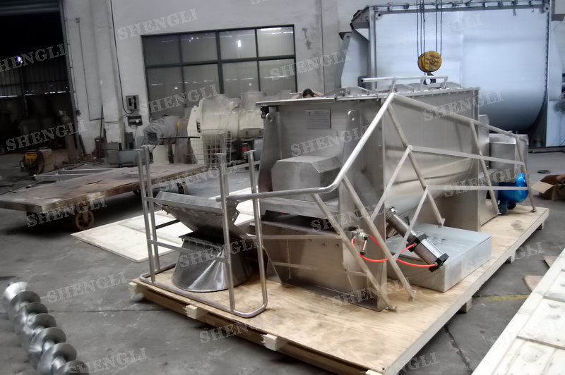 工作原理:螺带式混合机采用U型筒体,内装平行主轴,主轴上安装正反双向的盘条螺带,不同维度螺带分内螺带与外螺带,物料在螺带的驱使下反复参混,能够快速高效的混合。