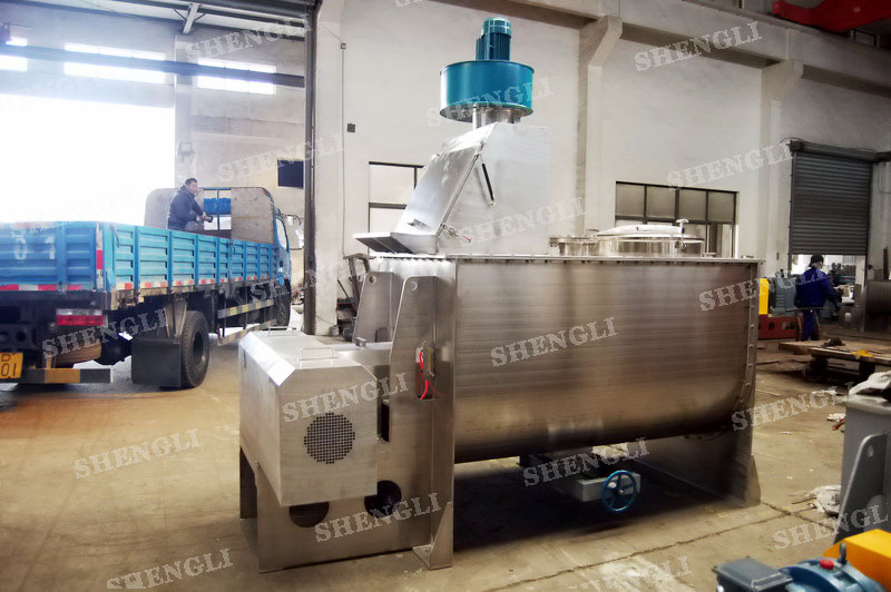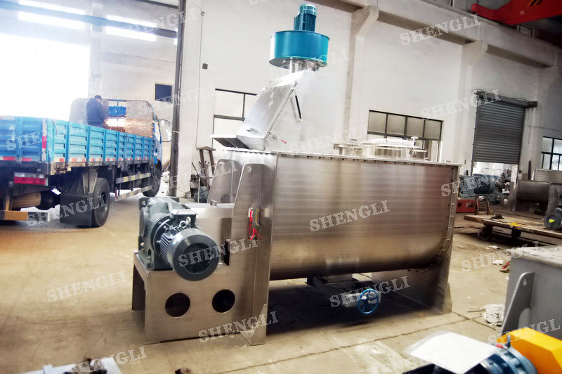 工作原理:螺带式混合机采用U型筒体,内装平行主轴,主轴上安装正反双向的盘条螺带,不同维度螺带分内螺带与外螺带,物料在螺带的驱使下反复参混,能够快速高效的混合。