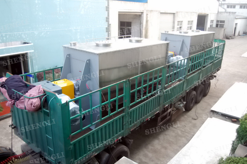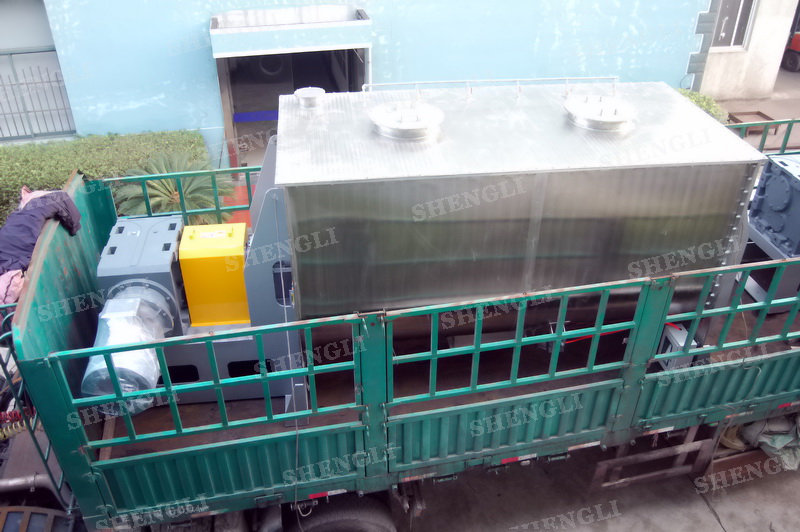 工作原理:螺带搅拌设备采用U型筒体,内装平行主轴,主轴上安装正反双向的盘条螺带,不同维度螺带分内螺带与外螺带,物料在螺带的驱使下反复参混,能够快速高效的混合。