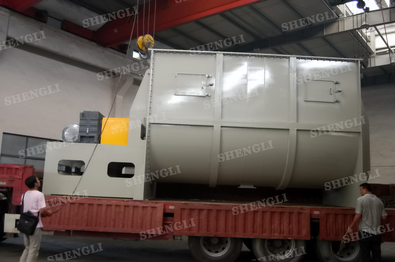 工作原理:螺带搅拌设备采用U型筒体,内装平行主轴,主轴上安装正反双向的盘条螺带,不同维度螺带分内螺带与外螺带,物料在螺带的驱使下反复参混,能够快速高效的混合。