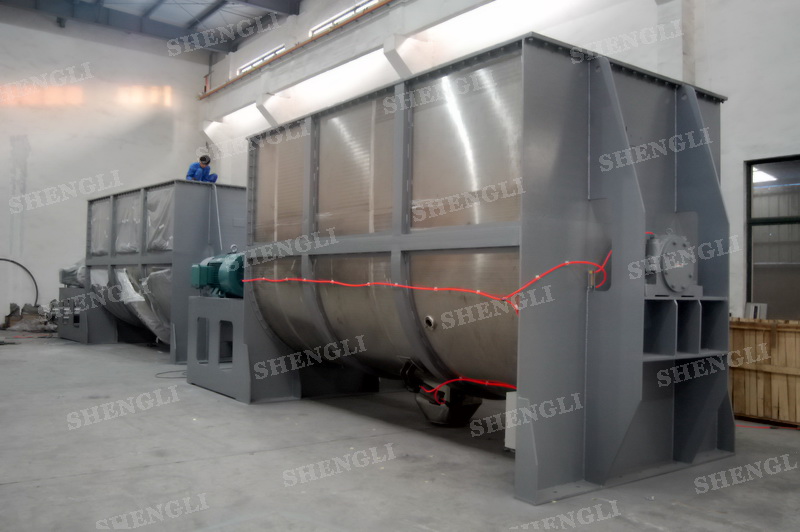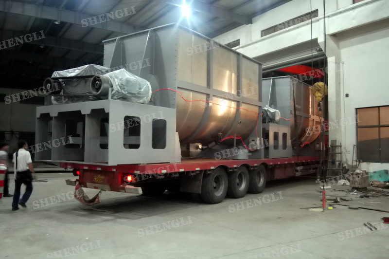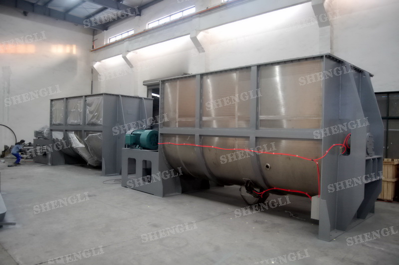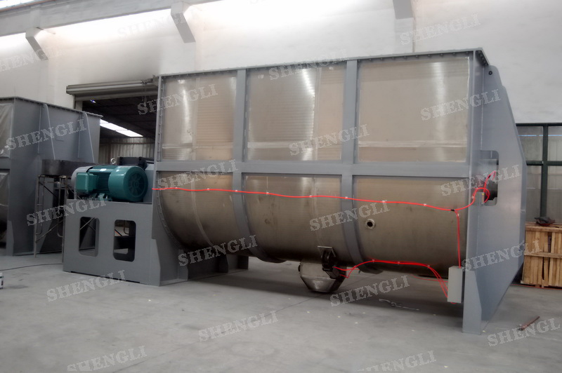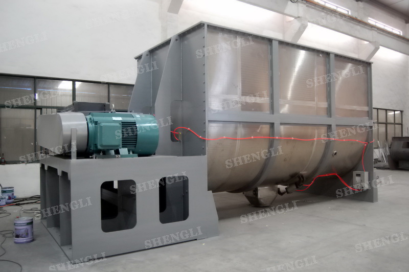 工作原理:螺带混合设备采用U型筒体,内装平行主轴,主轴上安装正反双向的盘条螺带,不同维度螺带分内螺带与外螺带,物料在螺带的驱使下反复参混,能够快速高效的混合。