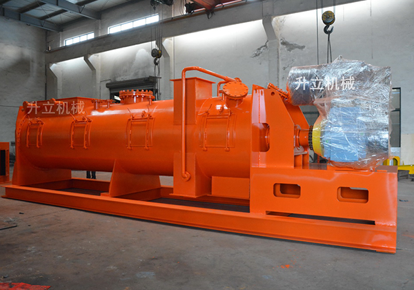 投入预破碎的物料、固体颗粒、废液、污泥、矿渣等各种物料充分混合,达到均质化效果。该装置为连续性混合设备,采用单轴桨叶式搅拌、内衬耐磨板、特殊设计的出料闸板,结合称重系统、检视系统、等组合部件,达到连续化作业、高产能的工艺。