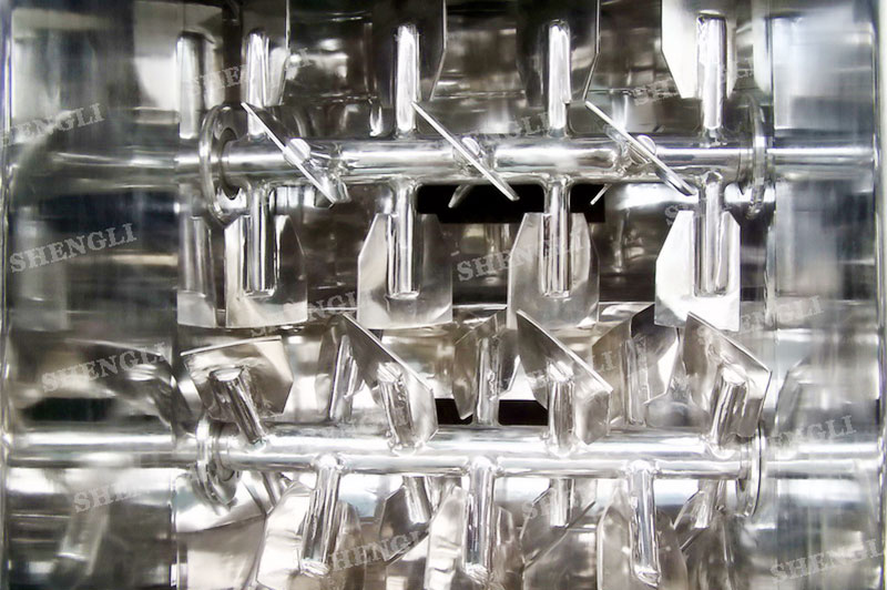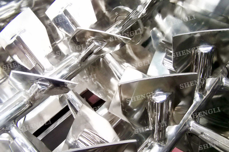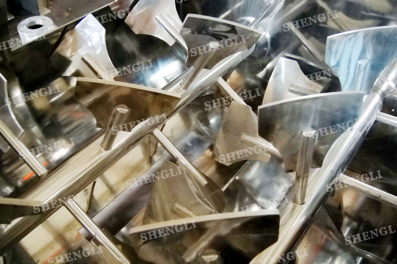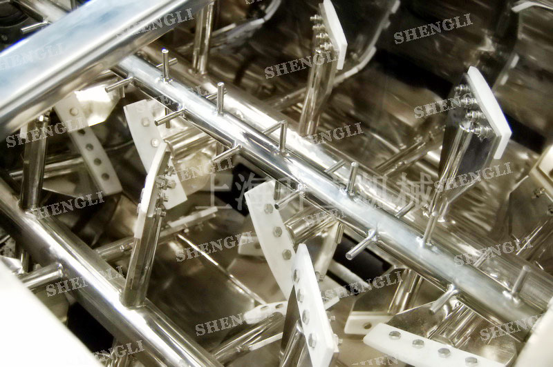 工作原理:无重力混合机采用双U型筒体,内装平行的双主轴,主轴设有对称的多组桨叶,其双轴的运行轨迹部分重合形成啮合空间,双轴在受双电机同步驱动,同步的对称向外翻搅物料,致使物料能够达到瞬间失重点,该设备具备高效物料无差别的混合能力。