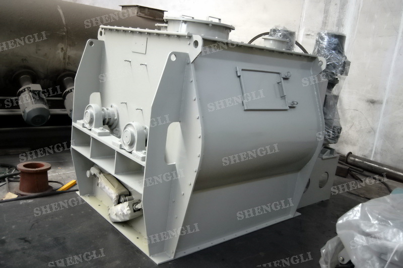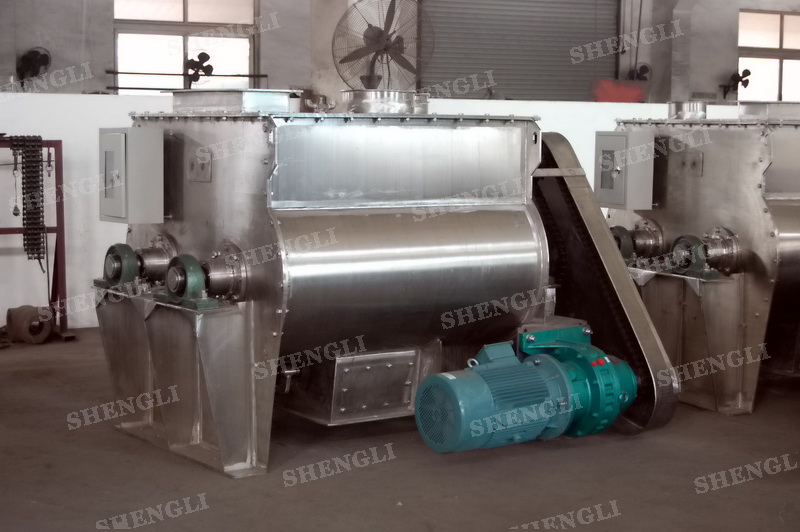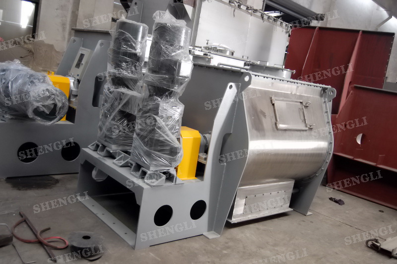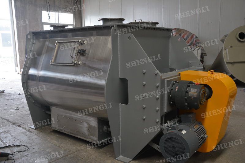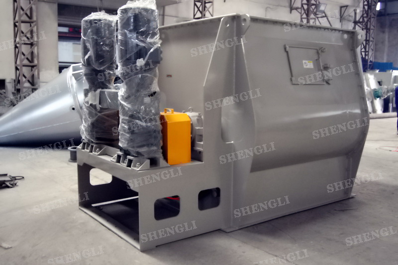 工作原理:无重力混合机采用双U型筒体,内装平行的双主轴,主轴设有对称的多组桨叶,其双轴的运行轨迹部分重合形成啮合空间,双轴在受双电机同步驱动,同步的对称向外翻搅物料,致使物料能够达到瞬间失重点,该设备具备高效物料无差别的混合能力。