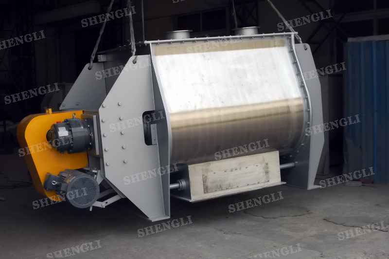 工作原理:无重力双轴搅拌机采用双U型筒体,内装平行的双主轴,主轴设有对称的多组桨叶,其双轴的运行轨迹部分重合形成啮合空间,双轴在受双电机同步驱动,同步的对称向外翻搅物料,致使物料能够达到瞬间失重点,该设备具备高效物料无差别的混合能力。